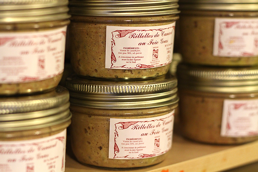 We snappen dat je waarschijnlijk geen hele kip meeneemt terug naar Nederland (alhoewel, best een goed idee), daarom raden we vooral ook de patés, rillettes, terrines en worsten aan. Een absolute aanrader is de terrine van gans én eend. Klein stukje op een stokbrood, glaasje witte wijn erbij, en genieten maar. Oja, die wijn verkopen ze hier ook. Meenemen maar!