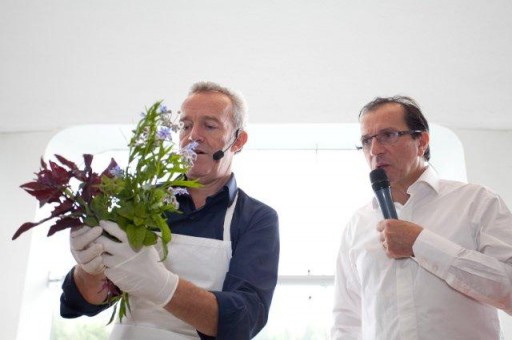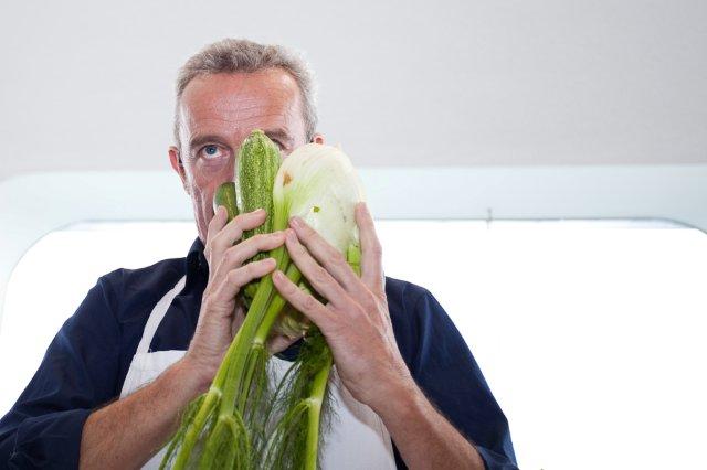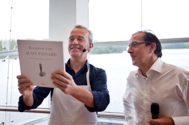 De boekpresentatie bij het Nederlandse groenterestaurant Vork & Mes is verre van alledaags. Alain Passard geeft een kookdemonstratie en presenteert hiermee meteen zijn complete filosofie. In het Frans. Bevriende chef – en inmiddels bekende Nederlander – Alain Caron vertaalt zijn verhaal. “Het beste kookboek zal nooit geschreven worden”, vertelt hij. “Dat heeft de natuur namelijk in handen.” En terwijl Caron dit zegt, ruikt Passard aan de groentes en stelt er een boeket van samen.