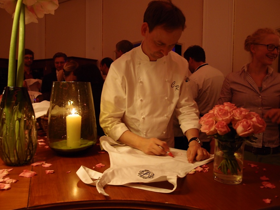 Het moge duidelijk zijn dat dit 14e keukenfeest een succes is. Voor – natuurlijk – de gasten, maar ook voor de uitgenodigde chefs en het complete team van Haerlin. Aan het eind van de avond blijkt de waardering van de gasten namelijk nog maar weer eens. Ze staan in de rij om hun schort gesigneerd te krijgen. Niet van alleen hun favoriete chef, maar het liefst van allemaal. Een eerlijker en directer oordeel over het eten en de sfeer kun je niet krijgen. En zo eindigt deze editie van de jaarlijkse küchenparty in Hamburg. Met glunderende chefs en gasten met een lach van oor tot oor. Wedden dat Haerlin er volgend jaar weer zo’n feest van maakt?
