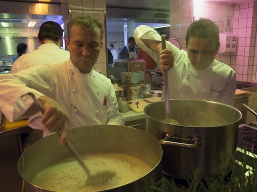 De uitgenodigde chefs komen uit alle uithoeken van Europa (Italië, Nederland, Denemarken en -natuurlijk – Duitsland). Ze maken zich niet druk. Ze zijn op tijd bij Hotel Fairmont Vier Jahreszeiten aangekomen en alle ingrediënten die chef Christoph Rüffer van restaurant Haerlin zou leveren, zijn aanwezig. Zijn hotel-restaurant telt natuurlijk niet voor niets twee sterren. De teams kunnen dus lekker aan de slag met een gerecht representatief voor hun eigen keuken. En dit levert een bijzonder menu op. Van rogvleugel tot kalfswang en van ree tot eikenijs, het valt straks allemaal te proeven. Nadat de chefs eerst even zelf geproost hebben, natuurlijk.