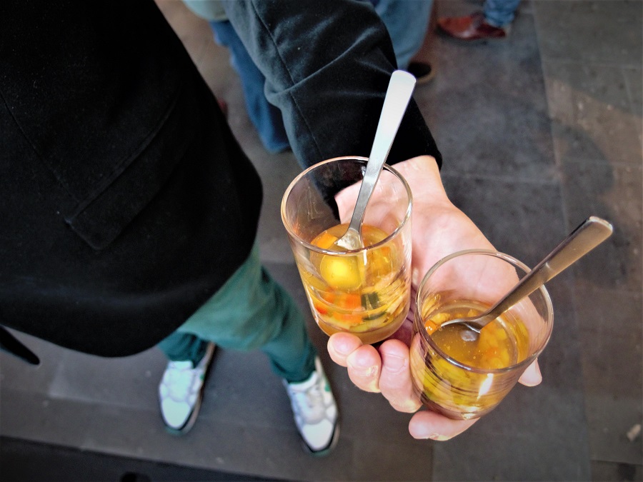De meeste chefs maakten eerst een amuse. En sommige daarvan waren wel heel smakelijk… Van Erik van Loo’s heldere gazpacho met zwarte olijf, Hollandse garnalen, gekonfijte knoflook en chilipeper hebben we er namelijk stiekem meer dan één gegeten.