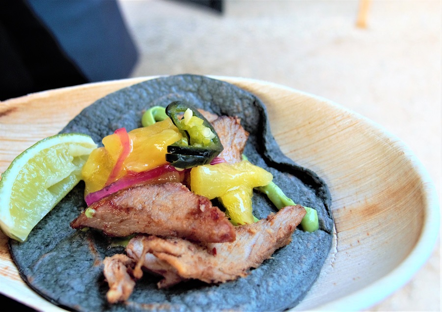 De mannen van Voltaire – het restaurant dat op landgoed Parc Broekhuizen te vinden is – voorzagen de gasten buiten van zwarte tacootjes ‘El Pastor’ van de Green Egg met ananas en zoetzuur.