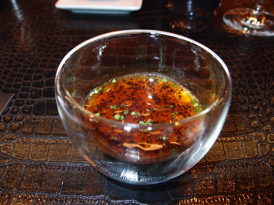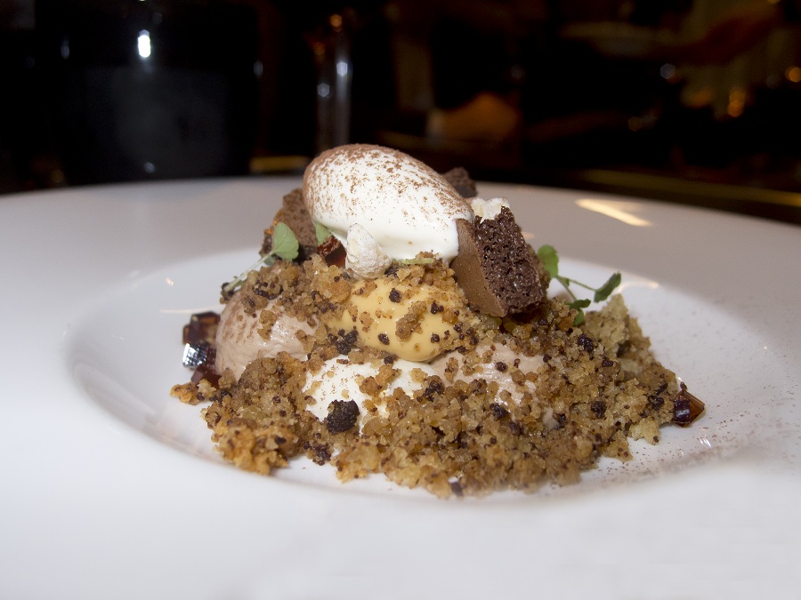 Zoals we al zeiden: André Chiang is niet zomaar een kok. Hij kookt volgens een eigen filosofie. Octaphilosophy noemt hij dit zelf. In ons 8 gangen diner ontdekken we dan ook een aantal signature dishes, gerechten waar deze chef bekend om staat. Zo is er de crème van foie gras uit de oven, met truffel en olijfolie. En als uitsmijter het dessert snickers; een crumble van gezouten pinda’s met caramelschuim en zout ijs.