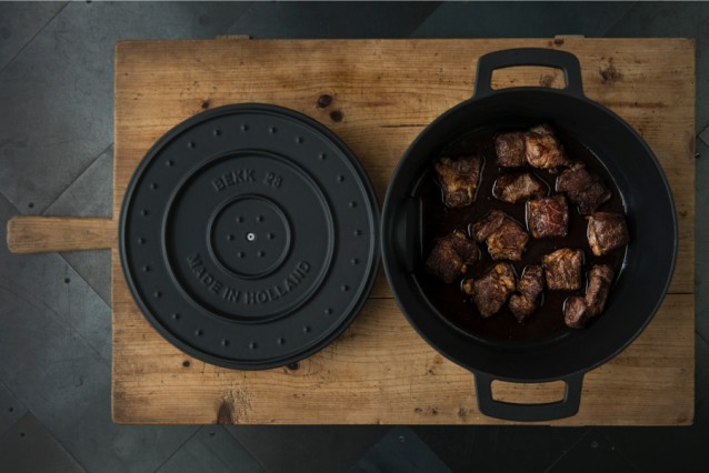 In de collectie van Combekk vinden we een koekenpan van 28 cm (€ 119,-) en vier soorten Dutch ovens. De klassieke grote braadpannen, zoals we die ook van Le Creuset kennen. Er zijn twee maten: 24 en 28 cm (€ 159,- en € 189,-), en dezelfde twee maten mét geïntegreerde thermometer (€ 219,- en € 229,-).