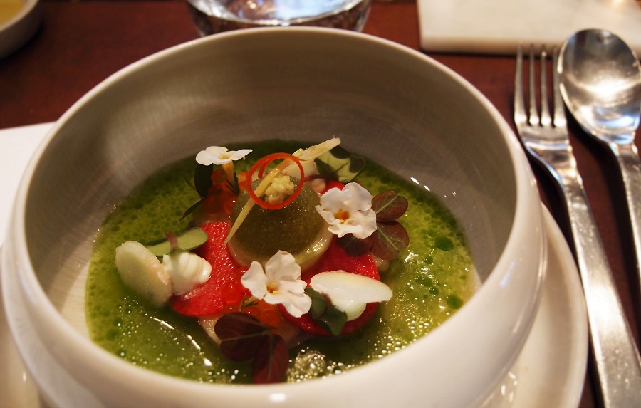Het signatuurgerecht van deze chefs valt snel op de kaart terug te vinden (meteen na de charcuterie, als voorgerecht): maigre, appel, wasabi, dashi. Een fris gerechtje opgemaakt in een kommetje en afgemaakt met witte bloemetjes en klaverzuring. Een goede starter! En gelukkig voor ons blijft het daar niet bij.
