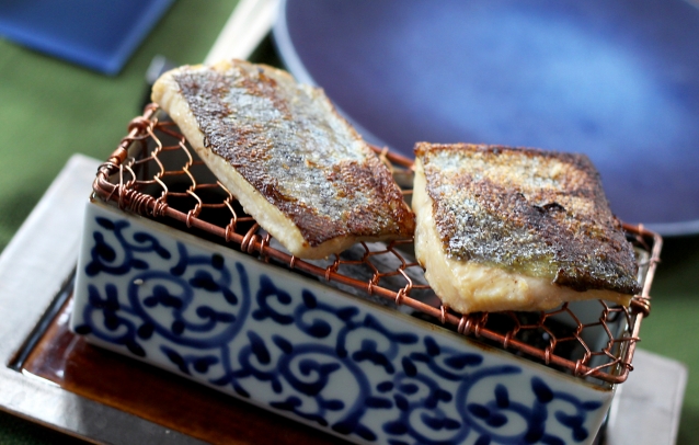Zoetwaterforel van de grill, geserveerd met koude soba-noedelsalade (niet op de foto). Lekker en perfect bereid, maar wel de enige gang waar we niet van jubelden.