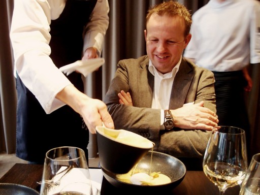 Leuk detail: de velouté wordt aan tafel ingeschonken en de kan die ze hiervoor gebruiken is niet minder dan een moderne versie van de kruik in het wereldberoemde schilderij. Zo’n interactief element is niet alleen slim gevonden, de velouté smaakt ook nog eens meesterlijk!
