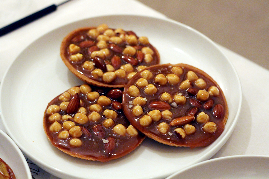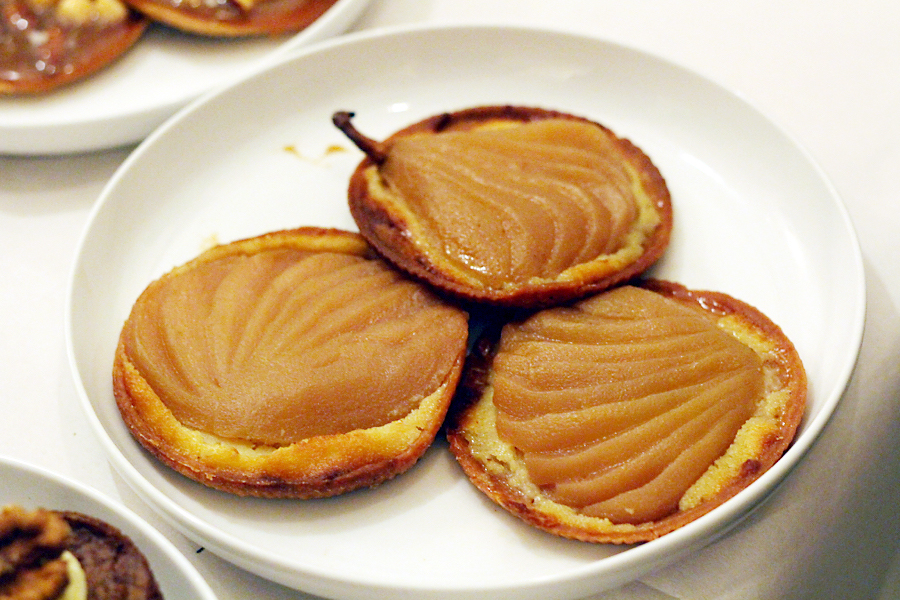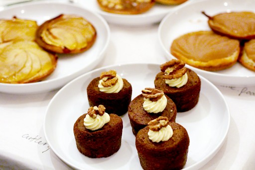 En dan een geweldige toetjesparade… Hoe kun je hieruit kiezen? Een appel tarte tatin met calvados, een frangipane taartje met stoofpeer, salted caramel-taartjes met noten en carrotcake-muffins met walnoot. We willen alles!