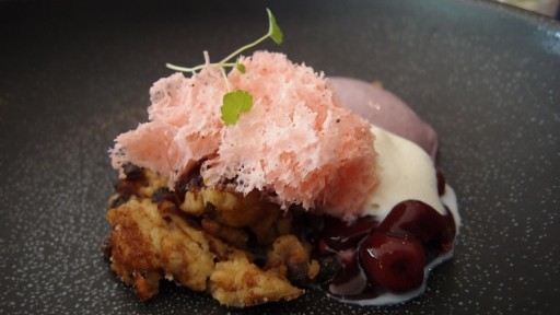 Kaiserschmarren met kersenmarmelade en kersenroomijs