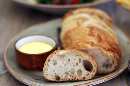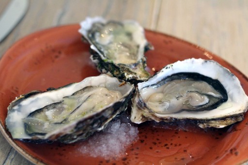 Brood vooraf. Smakelijk, supervers, flinke portie, goede roomboter. We bestellen oesters, die met een frisse limoenvinaigrette geserveerd worden. Echt Zeeuws en echt lekker.