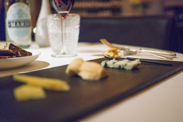 De tafelgenoot heeft nog ruimte voor een kaasplankje met een glaasje port; vier mooie bescheiden stukjes van heel intense kazen.