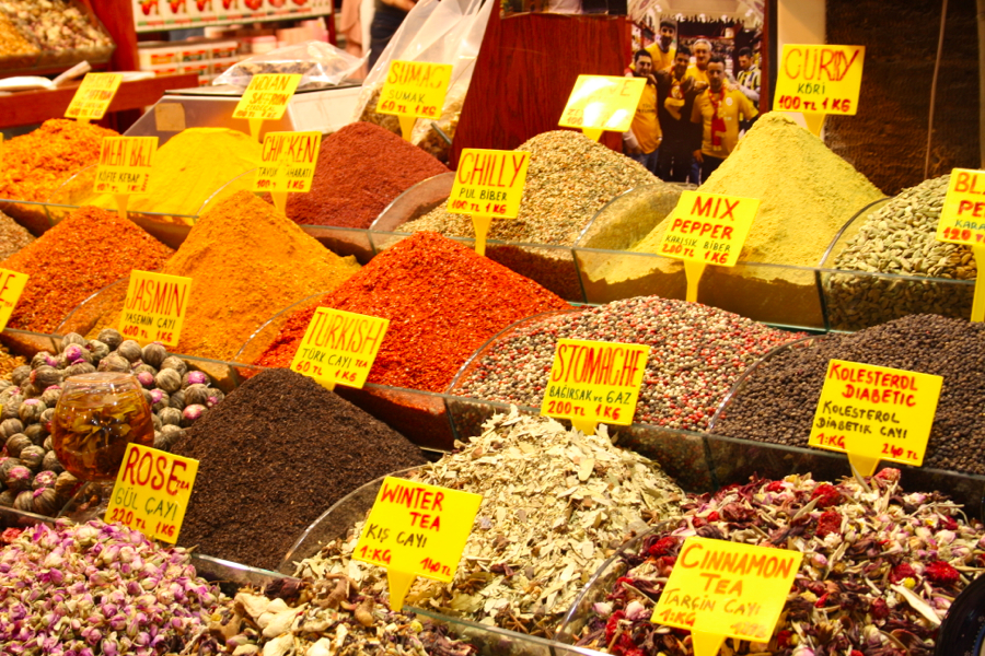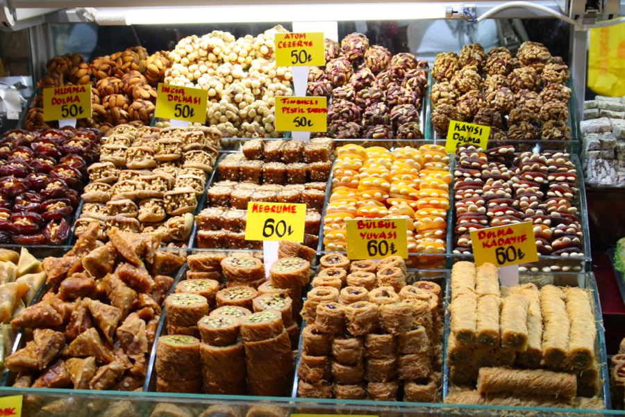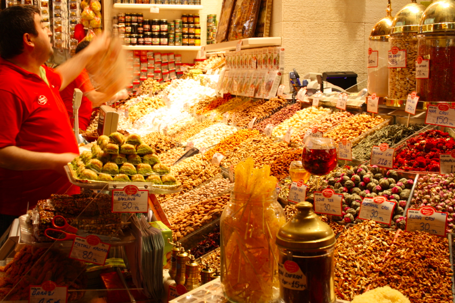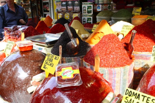 In deze bazaar vind je werkelijk alles. Van losse kruiden tot theebladeren, van zoetigheden (baklava! Turks fruit!) tot koekjes, van waterpijpen tot natural viagras, kruidenmixen waar flink mee geadverteerd wordt. De verkopers zijn enthousiast maar nooit opdringerig, leggen je graag dingen uit en laten je nog liever van alles proeven. De prijzen zijn laag en afdingen is niet meer dan normaal. Een ideale plek om kruiden in te slaan, zoals saffraan, kurkuma, hummus kruiden, anijs en allerlei soorten peper. Kijk hier voor een mooi overzicht van kruiden die vaak worden gebruikt in de Turkse keuken.