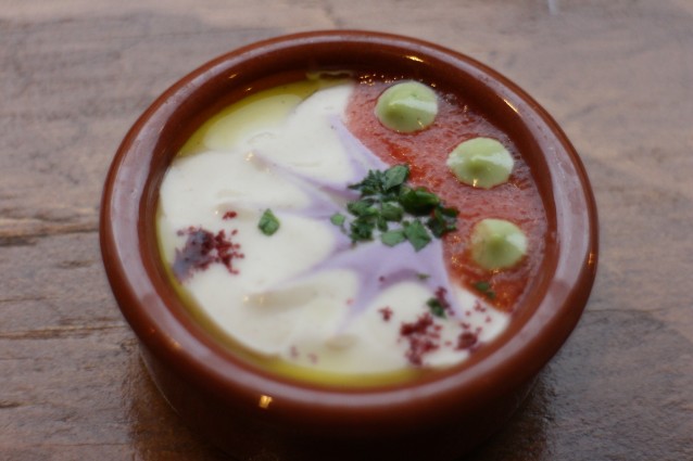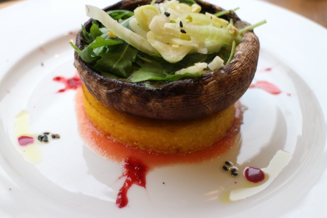 Dan volgt een (niet uit te spreken) gerechtje met geroosterde aubergine, aardappel en gekookt ei. Helaas is dit een beetje een tegenvaller in vergelijking met de rest, maar nog steeds goed op smaak. Ook de popo (polenta met portobello) is lekker, maar niet geweldig.