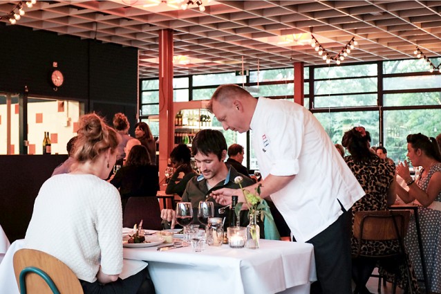 Chefkok Jeroen Robberegt kookt én serveert zelf de gerechten, met bijpassende uitleg. De bediening bestaat verder uit vlotte heren en dames in stoere spijkeroverhemden.