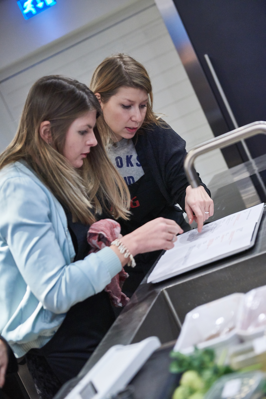 Het spannendste gedeelte is misschien nog wel het opmaken van de borden: 12 bordjes die er mooi en vrijwel identiek moeten uitzien, met heel veel verschillende componenten. En dan telt de chef ook nog hardop af (stress!). Maar we worden allen ontzettend blij van het eindresultaat.