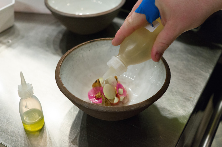 Het klinkt waanzinnig ingewikkeld: gisteren stonden we thuis nog een pantosti te bakken, nu koken we gerechten van De Librije, ín De Librije! Maar de receptuur is helder weergegeven in de vorm van een overzichtelijk stappenplan en de rondlopende chefs zijn zeer behulpzaam.