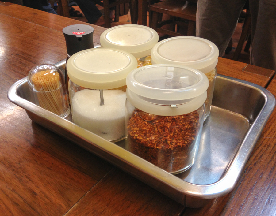 Wij gaan voor de Egg Wrapped Pad Thai with Prawn, oftewel: een flinterdunne omelet gevuld met gebakken noodles met garnalen. Binnen vijf minuten staat de tafel vol met dampend hete borden. Wauw, they are fast! Je kunt je noodles zelf nog aanvullen met een aantal ingrediënten die voor je klaar staan op tafel: taugé, partjes limoen, geroosterde pinda’s, ingelegde pepertjes, red chili flakes, en nog veel meer. Vooral de knapperige taugé doet ’t ‘m. Ook prettig aan deze Pad Thai: hij is niet pittig, dus voor iedereen goed te eten. Houd je van spicy, dan voeg je zelf chili’s naar smaak toe. Onze avond kan niet meer stuk: wat een ongelooflijk lekker gerecht is dit.