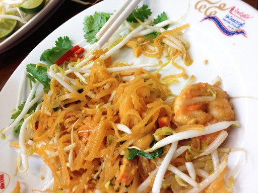 Een klein lesje Thais eten voor beginners. Pad Thai = gebakken noodles, en dit is hét gerecht van het land. Zie het als onze Hollandse stamppot: het is een basisgerecht, maar het kan zo uitgebreid aangekleed worden als een chef maar wil. En zoals met alle basisgerechten, kan de uitvoering variëren van ronduit slecht tot bijzonder goed.