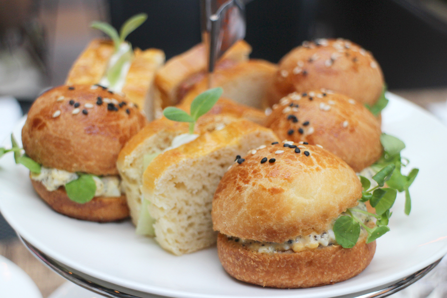 Van de briochebolletjes met truffel-eiersalade tot de sandwiches met steak tartare en gerookte zalm, en van de soesjes met banaan & salted caramel tot de sacher torte, mini pecan pie en een ring gevuld met pate de fruit. Alles, (ja, álles!) smaakt geweldig.