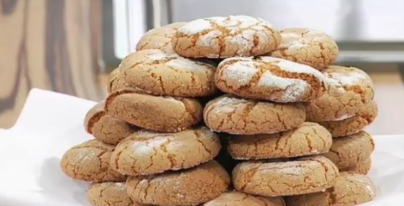 Amandelen fijnmalen, en mengen met poedersuiker, bakpoeder, kaneel, ei, citroenzest en eetlepel rozenwater. Het mengsel kneden tot deegballetjes (je handen een beetje nat maken met water of olie helpt!) en rollen door extra poedersuiker. Bak ze 20 min op 180 graden in de oven. Goddelijk!