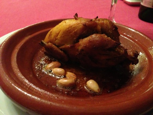 Gegeten en goddelijk bevonden: een kippetje uit de oven met ras el hanout kruiden, goede olijfolie en hele amandelen. Gevuld met couscous en kaneel!