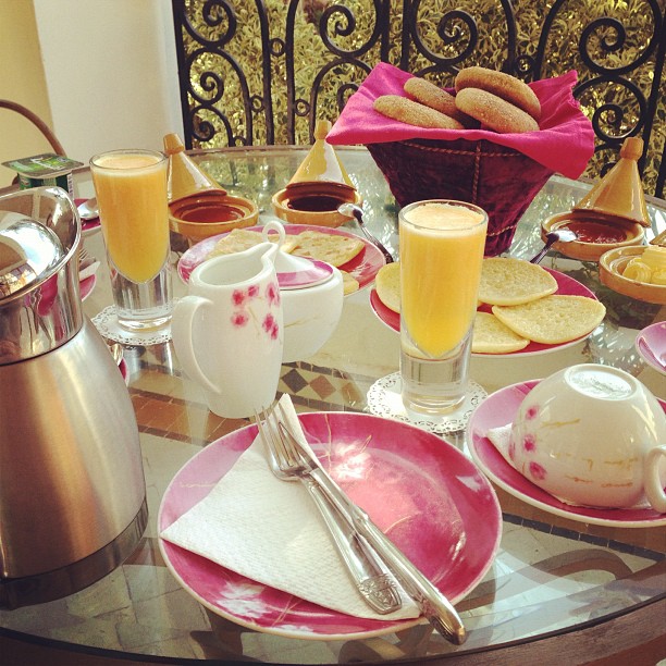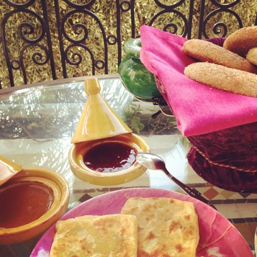 Bij de thee worden in Marokko allerlei soorten koekjes geserveerd. Vaak gemaakt van filodeeg, met nootjes (zoals amandelen), honing en oranjebloesemwater of rozenwater, waar de Marokkanen dol op zijn. Dit kun je vinden bij een Marokkaans winkeltje. Een makkelijk recept voor koekjes met amandelen en rozenwater: