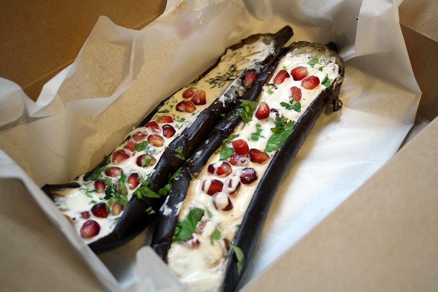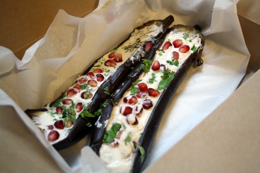 Wij piepten de aubergines thuis nog even op in de magnetron, maar je kunt ze ook heerlijk koud eten. Een supergerechtje, wellicht geinspireerd door Yotam Ottolenghi? Anyway, wij zijn er weg van. Vinnie (en Jules, natuurlijk): we komen gauw weer!