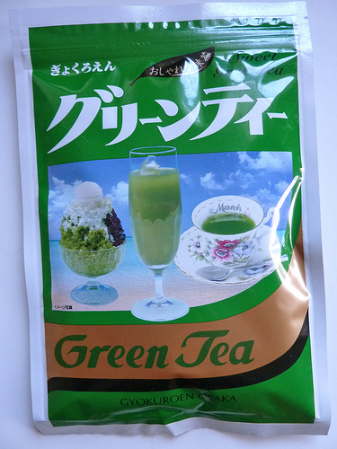 Wat is het? Nou, groene thee dus, maar dan gezoet en superfijn gemalen. In Japan is het bekend als Matcha. Ongezoet wordt het gebruikt tijdens theeceremonies. De Matcha wordt dan gemengd met heet water en met een soort scheerkwast schuimig geklopt. Moet je van houden… Groene theepoeder wordt ook veel gebruikt in gebak en desserts. Ook groene theenoedels worden met Matcha gemaakt.