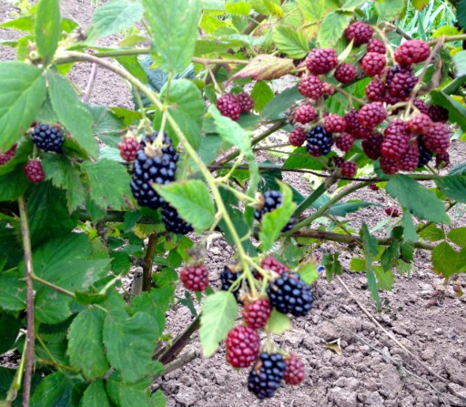 Hopelijk is de rand van mijn moestuin een goede voorbode voor wat volgend seizoen gaat brengen. Want, ondanks de horrorverhalen van de te vochtige kavels, het slechte voorseizoen (eerst te nat en nu te droog) en de leemgrond (weinig voeding) doen de bramenstruiken het vol overgave. Officieel zijn de bramenstruiken deels van de buurman, maar die heeft al te kennen gegeven dat hij ze niet plukt: “Je mag ze rustig pakken hoor, ook aan mijn kant”.