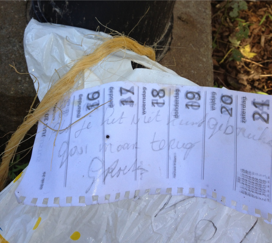 Het handgeschreven briefje van een buurman: iets verregend, maar niet minder hartverwarmend.