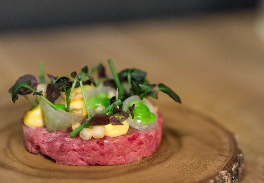 Bijvoorbeeld softshellkrab met grapefruit, venkel en pittige mayonaise. Of appelbeignet met gebrande eendenlever, gefermenteerde rode kool en oude aceto balsamico. Of wat dacht je van ravioli gevuld met Gorgonzola en knolselderij, kappertjes, Parmezaan en saus van gebruinde boter?