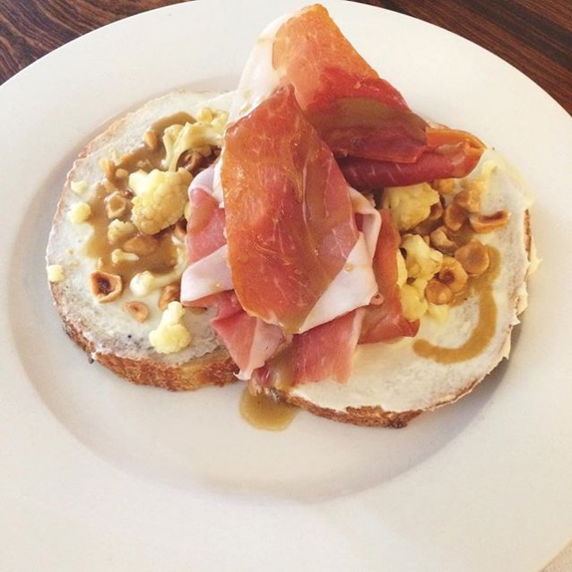 3. Het broodje San Daniele ham met bloemkool-mousse en koffievinaigrette van Vinnies (Haarlemmerstraat 46 en Nieuwezijds Kolk 33)