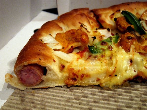 4. Ook mini-hotdogs blijken een prima vulling voor een pizza…