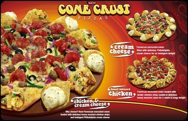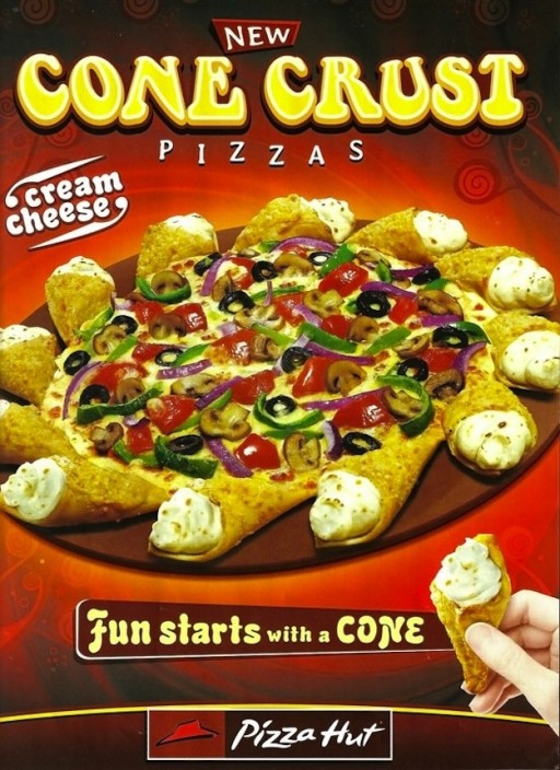 8. Pizza in een ijshoorntje met een vulling van creamcheese