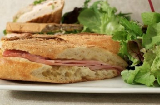 Eet dit verrukkelijke broodje met ham, mayonaise en sla bij de Bouchon Bakery.