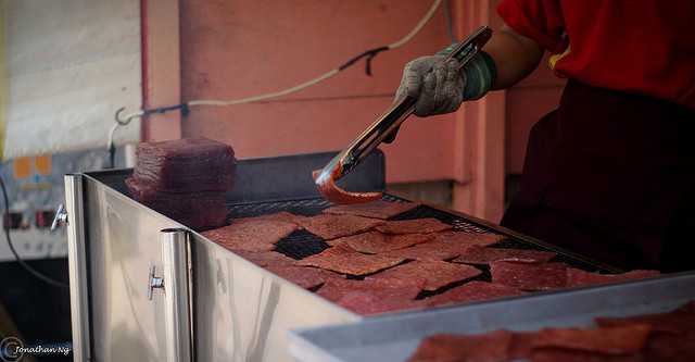 Bak Kua is gedroogd varkensvlees. Het doet een beetje denken aan beef jerky, maar dit is varkensvlees in plaats van rund. In Maleisië worden deze repen gedroogd vlees vaak even gebakken, in stukjes gesneden en op een broodje gedaan.