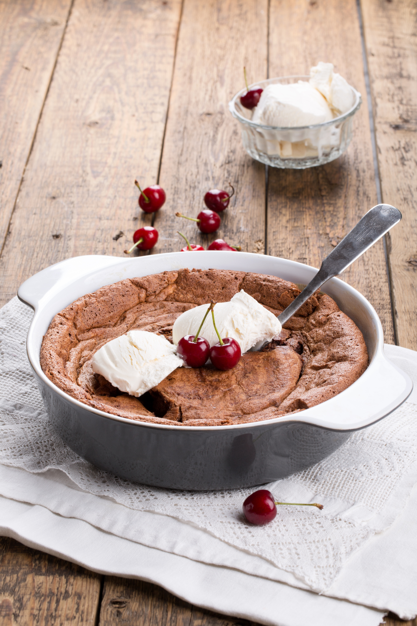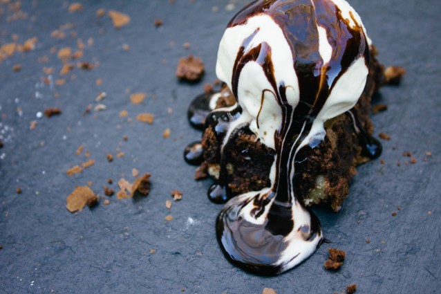 Een chocoldetaart of brownie, straight from the oven, en dan met een lekker dikke klodder opgeklopte slagroom, mascarpone of crème fraîche.