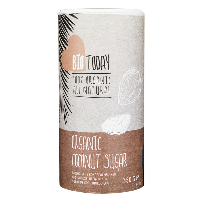 Deze kokospalmsuiker van Bio Today vind je in de Albert Heijn, Jumbo en menig bio-winkel.