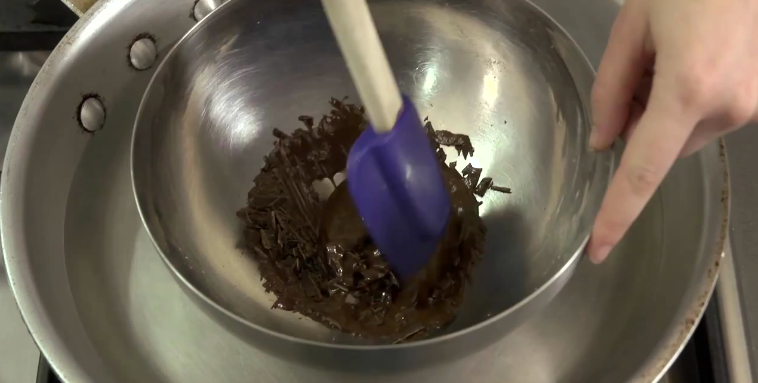 Chocolade au bain marie boven een grote soeppan of sauspan hangen, is volgens de experts van CHOW niet de beste manier. Zij doen het namelijk in een ondiepe koekenpan! Bekijk hun tip: