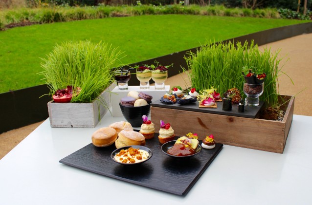 Op de planken vind je kleine hapjes met bijvoorbeeld geitenkaas, druiven en krokante sjalotjes, hartige hoorntjes met gerookte makreel, mini banoffee pies en chocoladetruffels. Natuurlijk mogen scones met jam en clotted cream ook hier niet ontbreken en daar kun je dan ook volop van genieten.