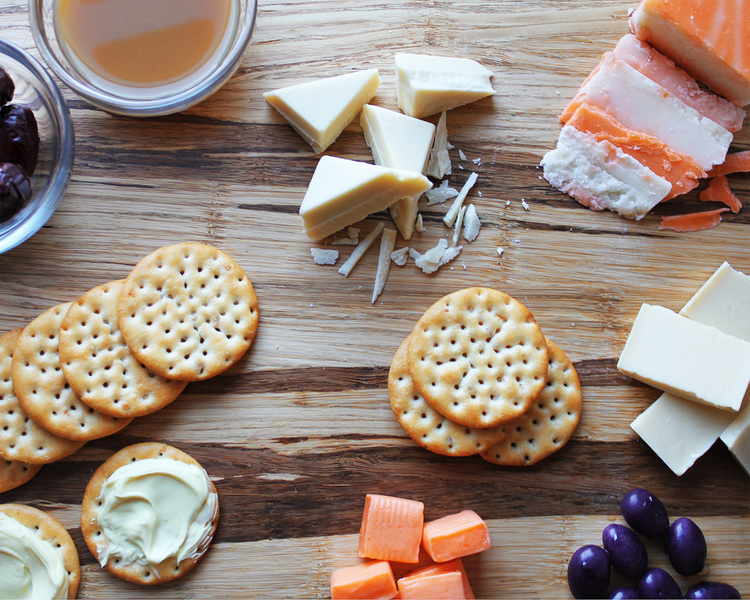 Dit borrelplateau lijkt nét echt! Toch is het gemaakt van vanille- en sinaasappelfudge, toffees, witte chocolade en karamelsaus. Over de toastjes twijfelen we nog…