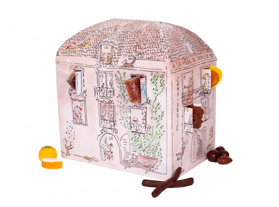 A la Mère de Famille – een van de beroemdste snoepwinkels van Parijs – stopte een kersthuis vol met snoepjes. Online te koop.