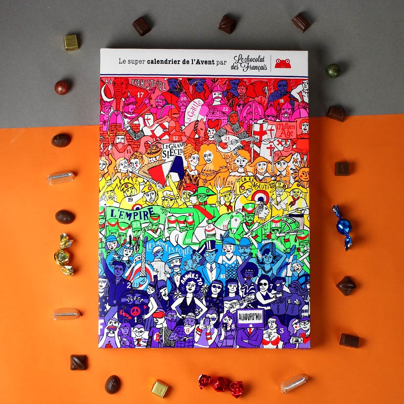Le Chocolat des Francais maakt chocoladerepen met hippe wikkels. Hun adventskalender – gevuld met chocolaatjes – is al minstens zo hip(ster).
