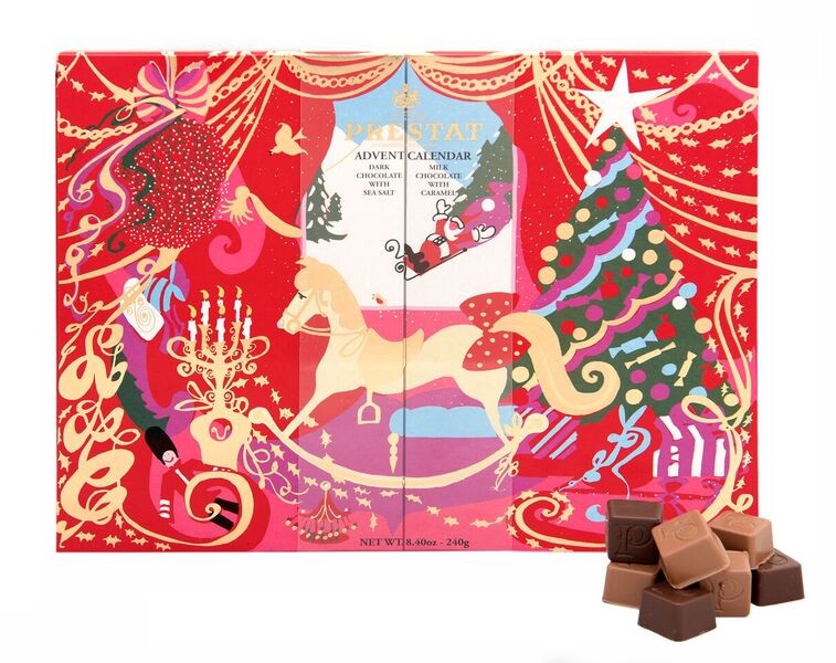 Prestat maakt niet alleen de mooiste verpakkingen, maar ook de mooiste adventskalenders. Hierin zitten de favoriete truffels van schrijver Roald Dahl. Online te koop via Prestat.co.uk