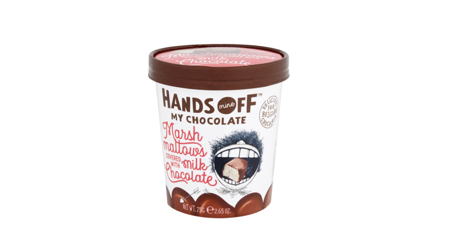 Ziet er leuk uit, smaakt top: deze marshmallows omhuld met melkchocolade van Hands Off My Chocolate. En voor maar € 2,95 zet je zo’n leuke beker op het bureau van die lieve collega.