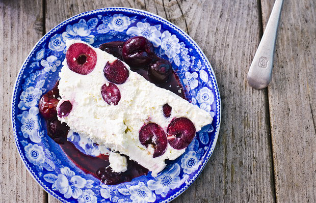 Dit recept voor semifreddo met kersen en witte chocolade is een makkelijke variant op roomijs. Zo lekker!