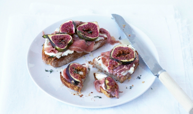 Tartines met geitenkaas, vijgen en prosciutto