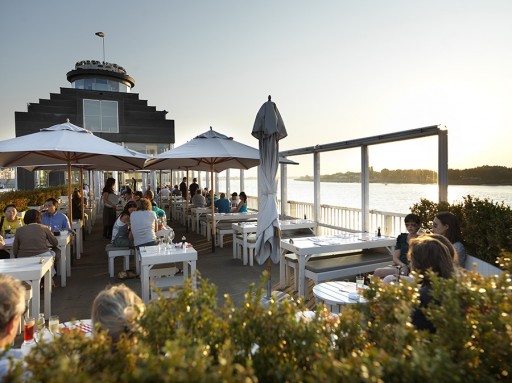 In de zomer is het op het Zuiderterras in Antwerpen heerlijk vertoeven. Na een wandeling langs de Schelde is dit terras de ideale plaats om even tot rust te komen. Het ligt als een aangemeerd schip aan de kade, en door de grote raampartijen en spiegels lijk je bijna in het water te liggen.