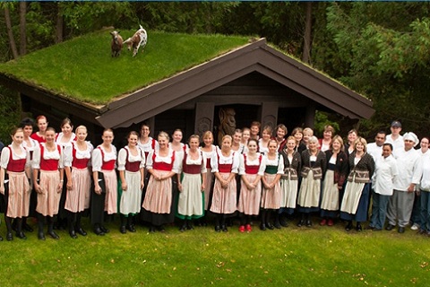 Al Johnson’s Door Country, WI. Geiten lopen vrolijk rond je tafeltje, en de serveersters zijn gekleed in traditionele Scandinavische kledij.