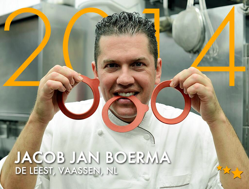 Restaurant De Leest in Vaassen, waar Jacob-Jan Boerma de sterren van de hemel kookt, heeft een derde Michelinster gekregen. Er zijn 9 nieuwe restaurants met 1 ster bijgekomen, en 3 nieuwe tweesterrenrestaurants. In totaal telt Nederland nu 105 sterrenzaken. Dat is wat Michelin vandaag bekend maakte in de nieuwe Michelingids voor 2014.